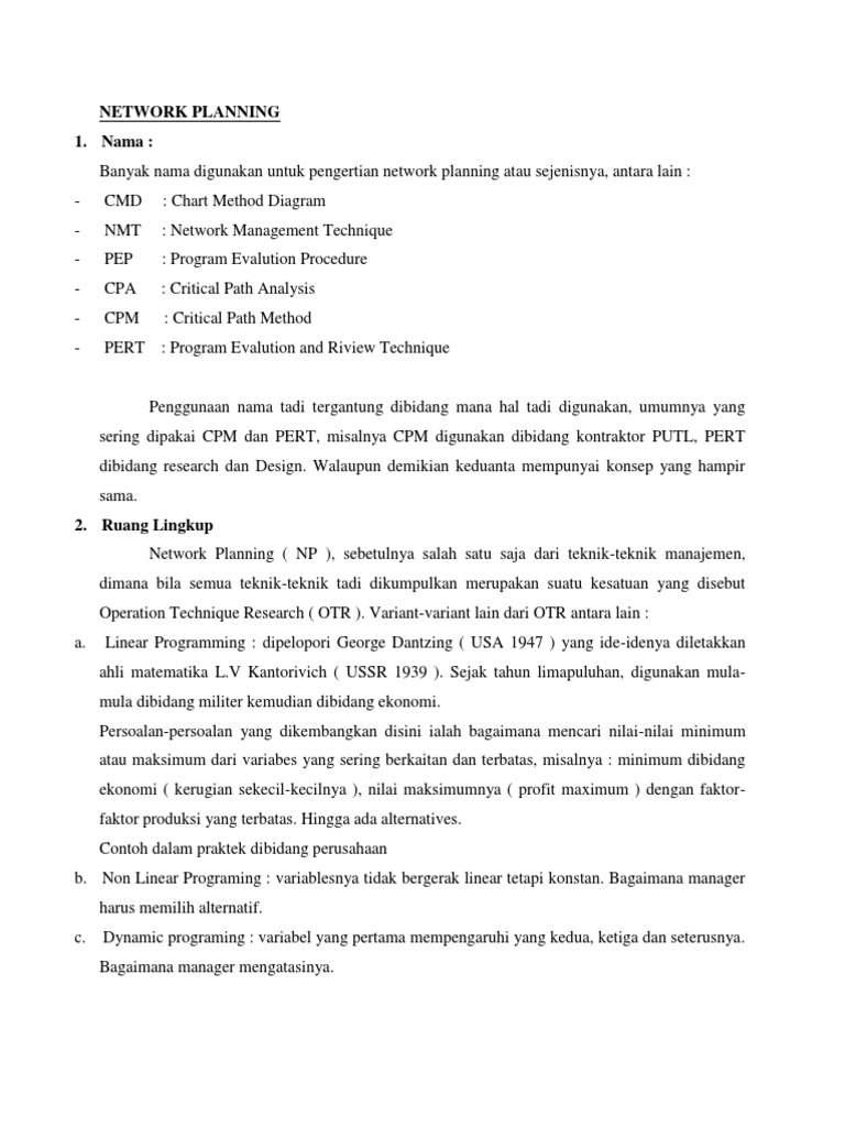 Berikut ada beberapa definisi network planning yang saya dapat dari berbagai pustaka. Contoh soal network planning. Perencanaan planning merupakan salah satu fungsi.