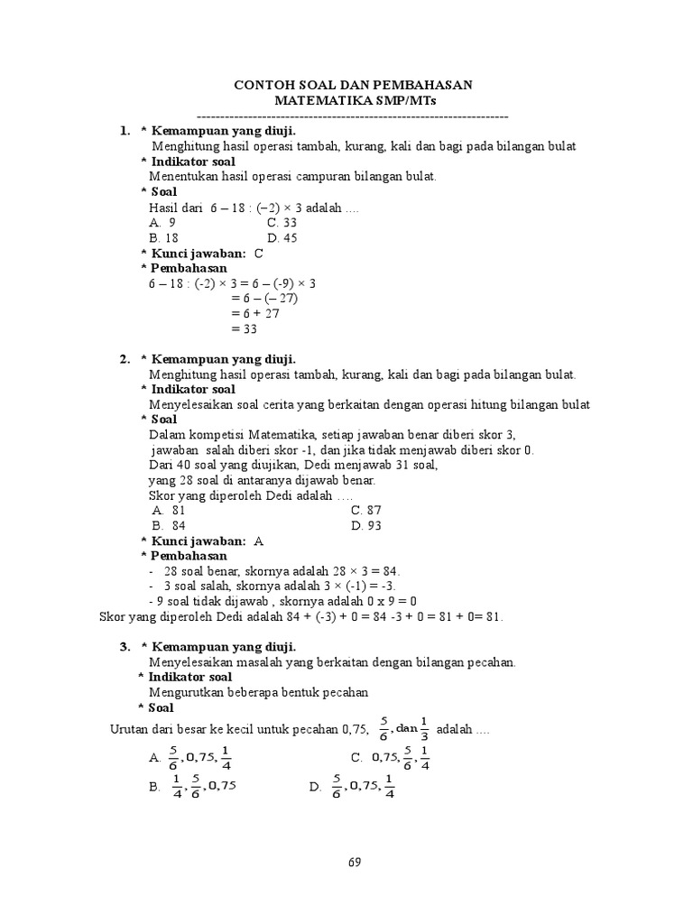 Contoh Soal Bilangan Bulat Dan Pecahan Kelas 7 Contoh Soal 1