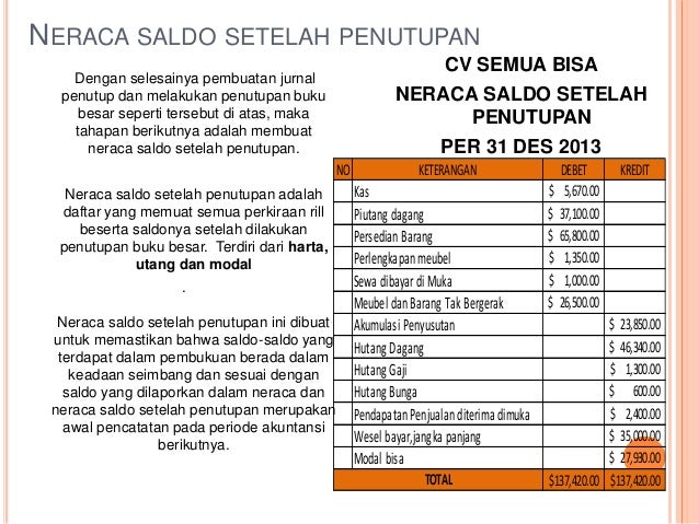Neraca Saldo Setelah Penutupan Akuntansi Smk Akuntansi