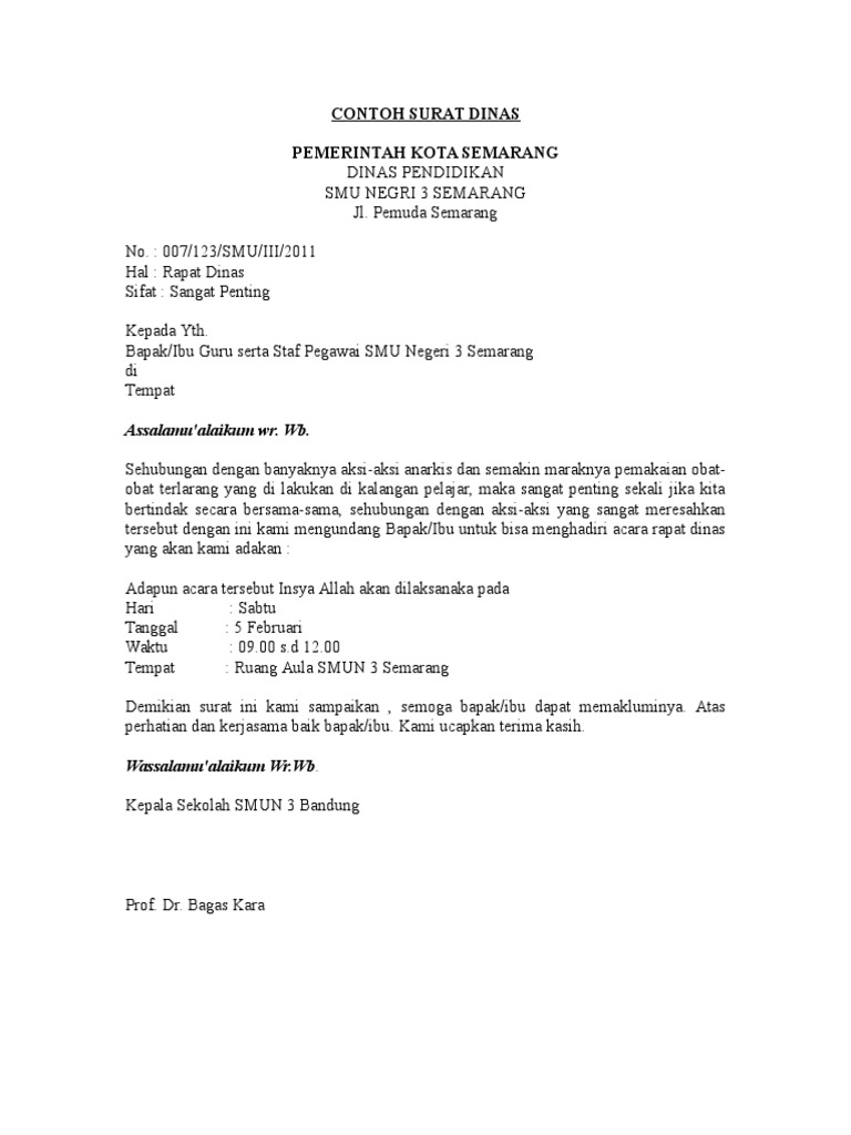 Surat perintah kerja ini termasuk kedalam surat resmi, maka didalamnya pun harus memakai format surat resmi yang baik. Pemerintah kota magelang sma n 7 magelang muntilan, magelang telp: Dengan berbagai contoh surat yang telah banyak akan membantu kamu untuk mengetahui contoh surat resmi yang baik dan benar. Mengenal tentang surat dinas adalah selem. Contoh surat resmi dengan penjelasannya seperti pengertian surat resmi, fungsi dan format penulisan surat resmi. Ya, surat dinas merupakan surat yang dibuat oleh instansi resmi yang berguna untuk berbagai kepentingan tertentu. Contoh surat dinas pemerintahan sangat diperlukan oleh anda yang bekerja di kantor atau instansi pemerintah. Demikian untuk dilaksanakan dengan penuh tanggungjawab. Sma negeri 25 banjar jl. Contoh surat dinas resmi sekolah. Pada beberpa surat resmi seperti surat dari instansi pemerintahan biasanya terdapat logo instansi yang berada di sbelah kiri bagian atas. Pemerintah kota semarang dinas pendidikan nasional sma negeri 6 semarang kalibanteng , semarang telp: Surat resmi tidaklah menjadi hal yang asing lagi, bahkan surat resmi sangat dibutuhkan untuk keperluan setiap hari.